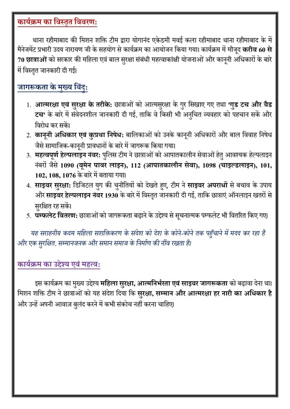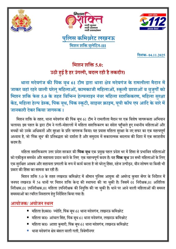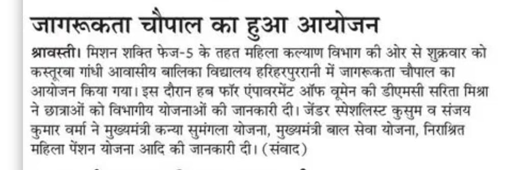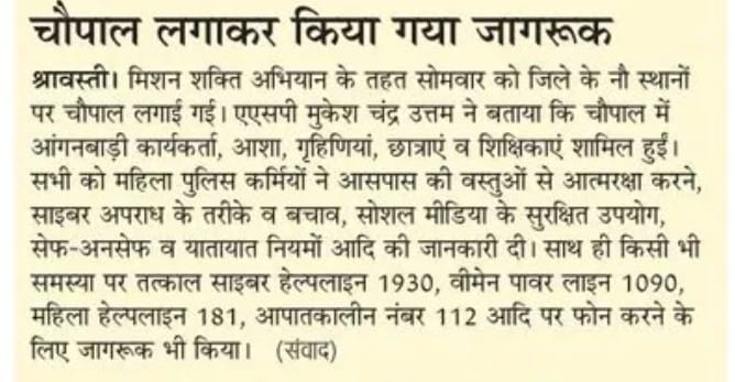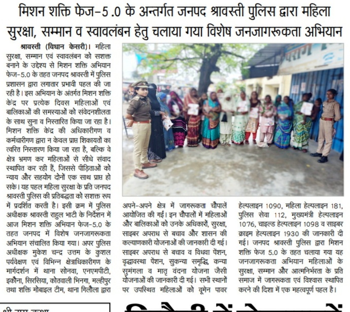 मिशन शक्ति 5 प्रेस विज्ञप्ति जनपद श्रावस्ती Show Less