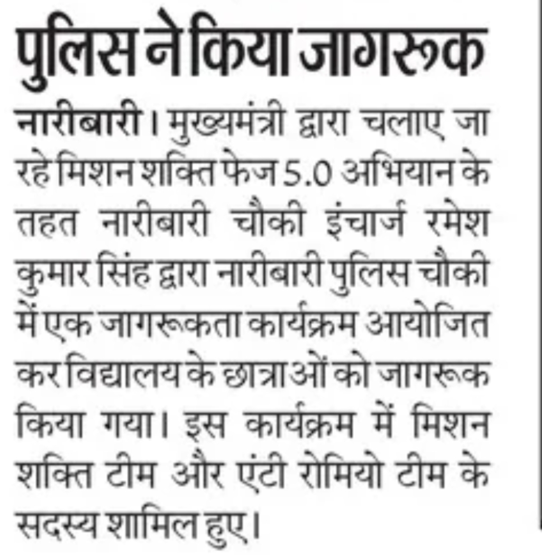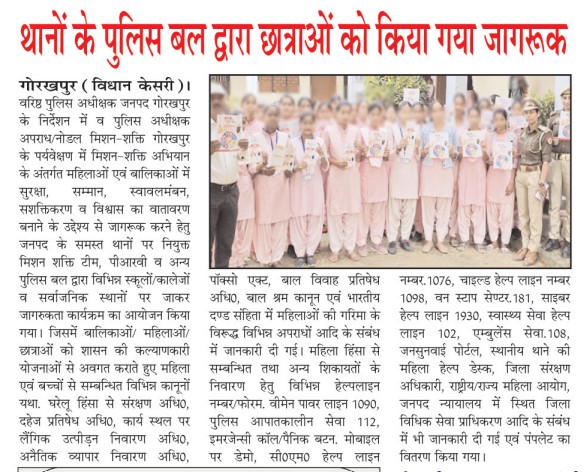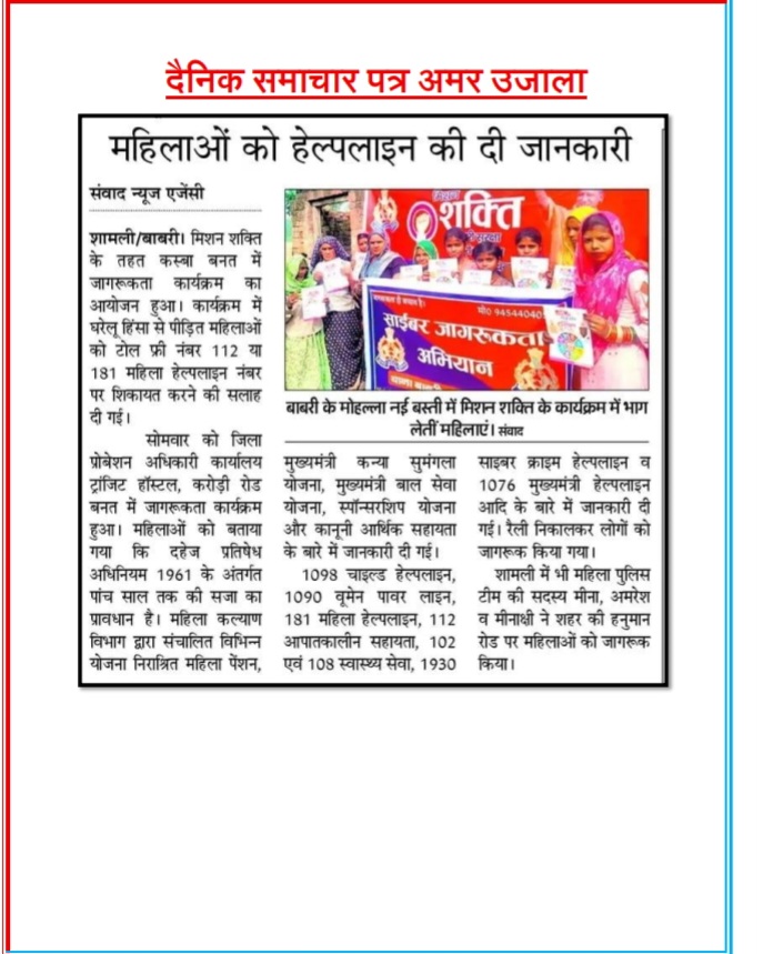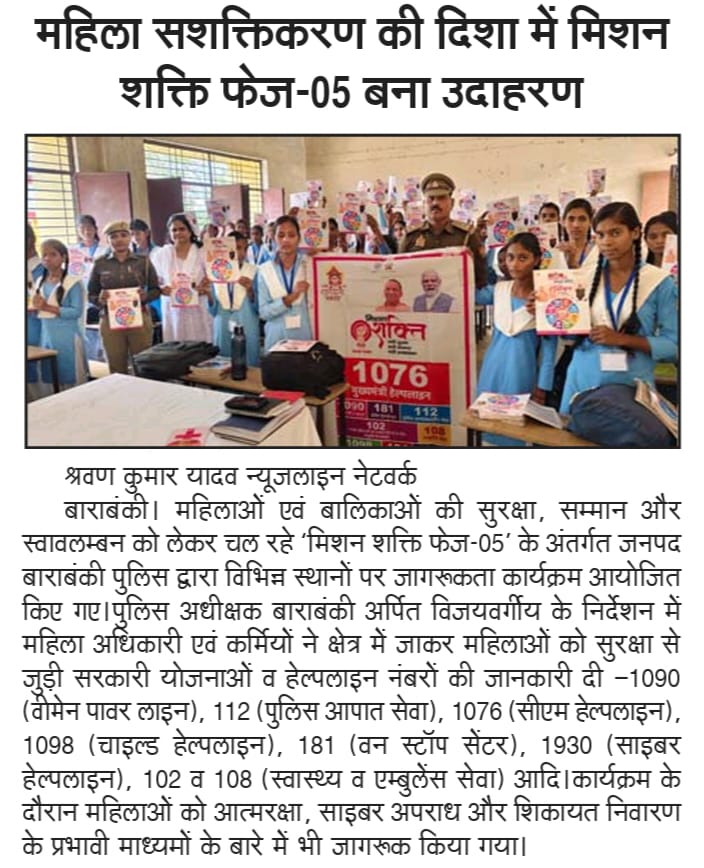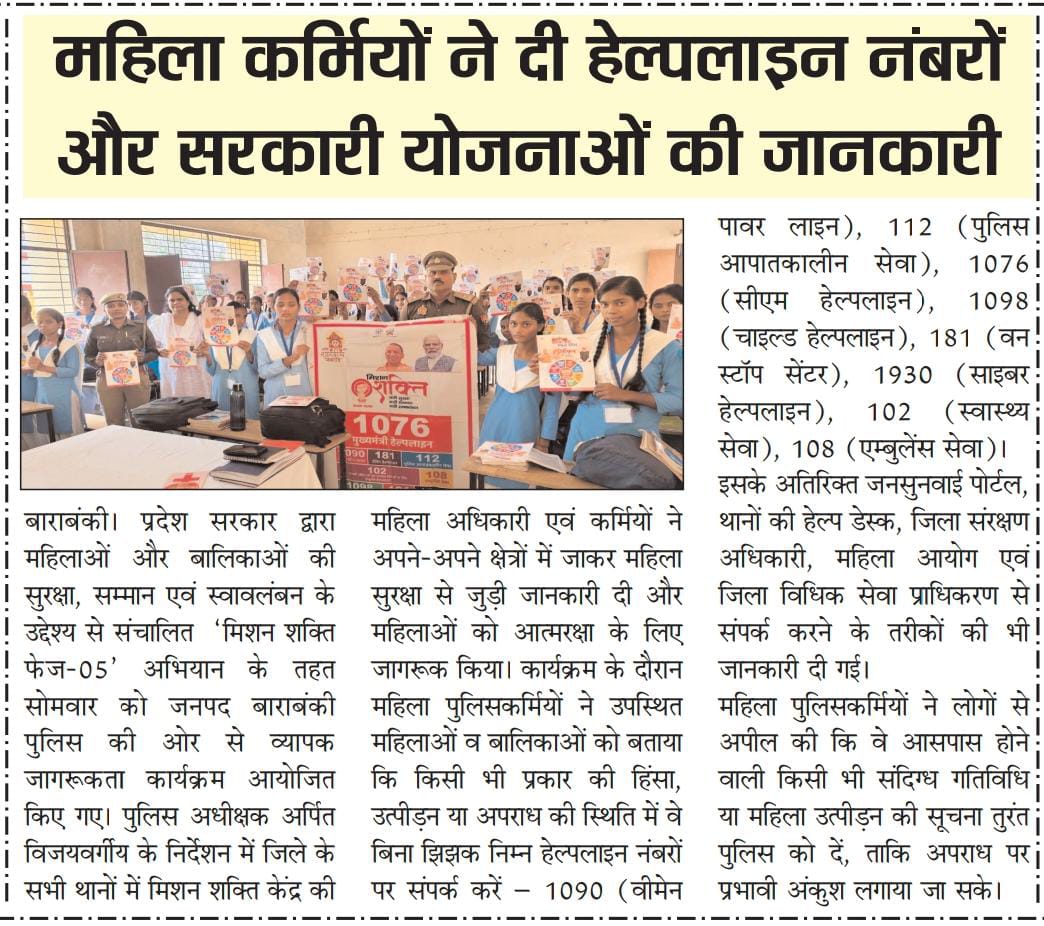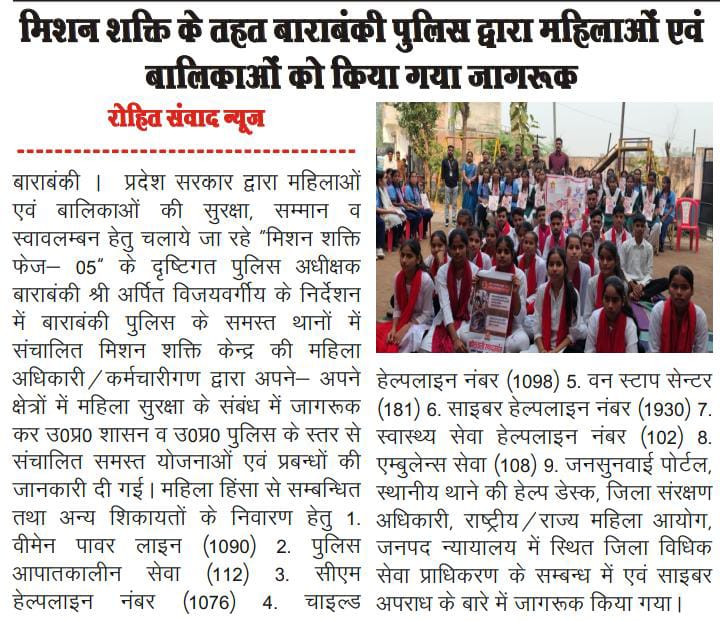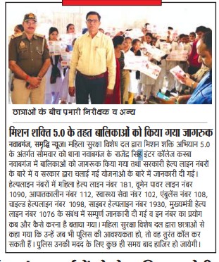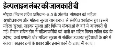 मिशन शक्ति 5.0 के अन्तर्गत कमिश्नरेट गौतमबुद्धनगर की मिशन शक्ति टीमों द्वारा जनजागरूकता कार्यक्रम के माध्यम से "हेल्पलाइन नम्बर की जानकारी दी" - समाचार पत्र कटिंग Show Less