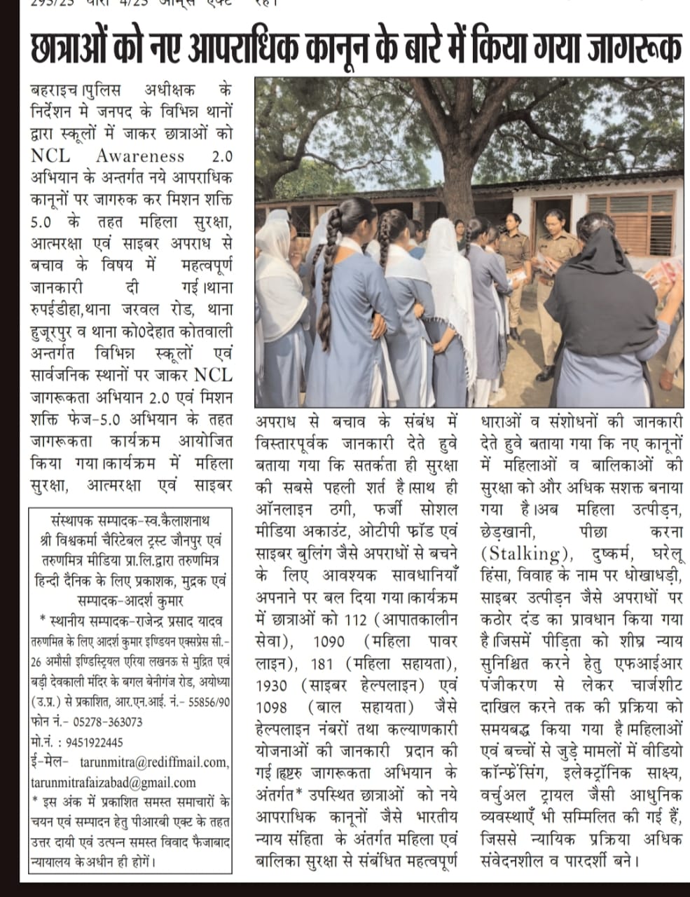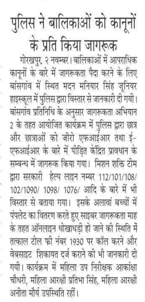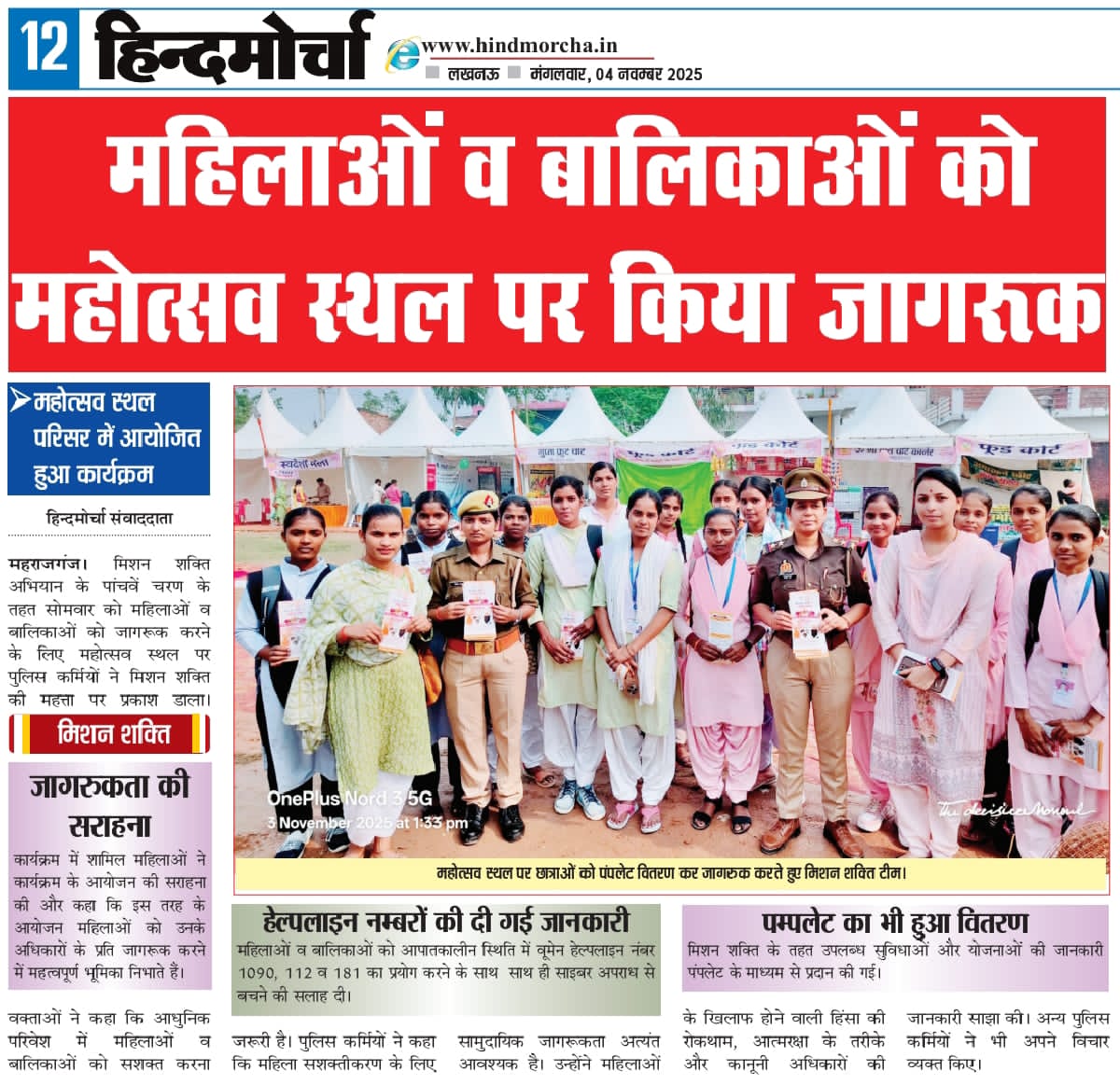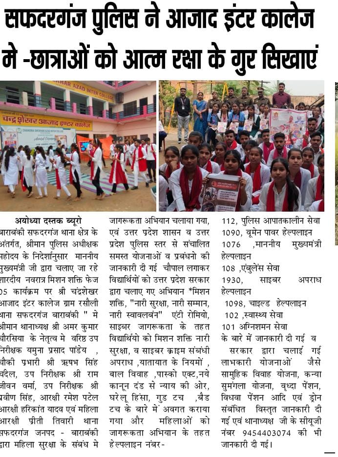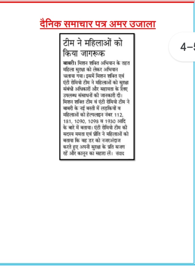 मिशन शक्ति 5.0 के अन्तर्गत कमिश्नरेट गौतमबुद्धनगर की मिशन शक्ति टीमों द्वारा जनजागरूकता कार्यक्रम के माध्यम से "हेल्पलाइन नम्बर की जानकारी दी" - समाचार पत्र कटिंग Show Less