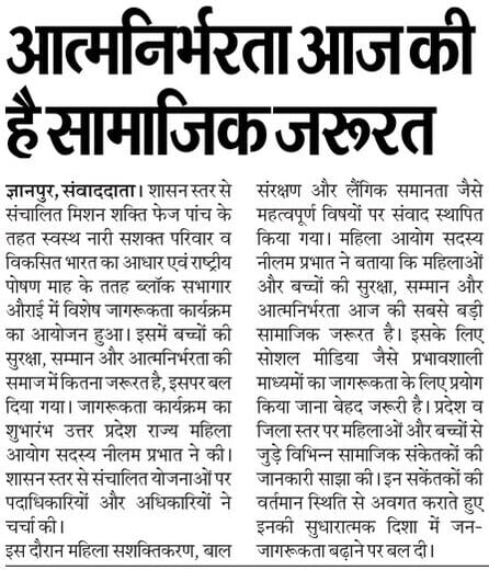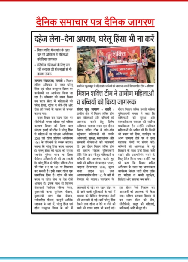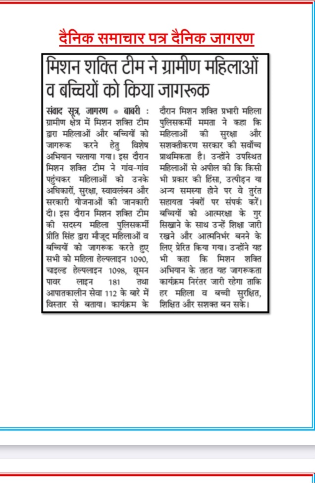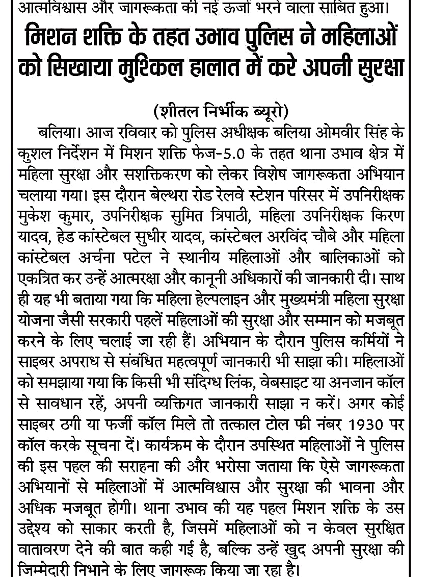 मिशन शक्ति फेज 5.0 अभियान के तहत प्रेस कटिंग जनपद बलिया Show Less