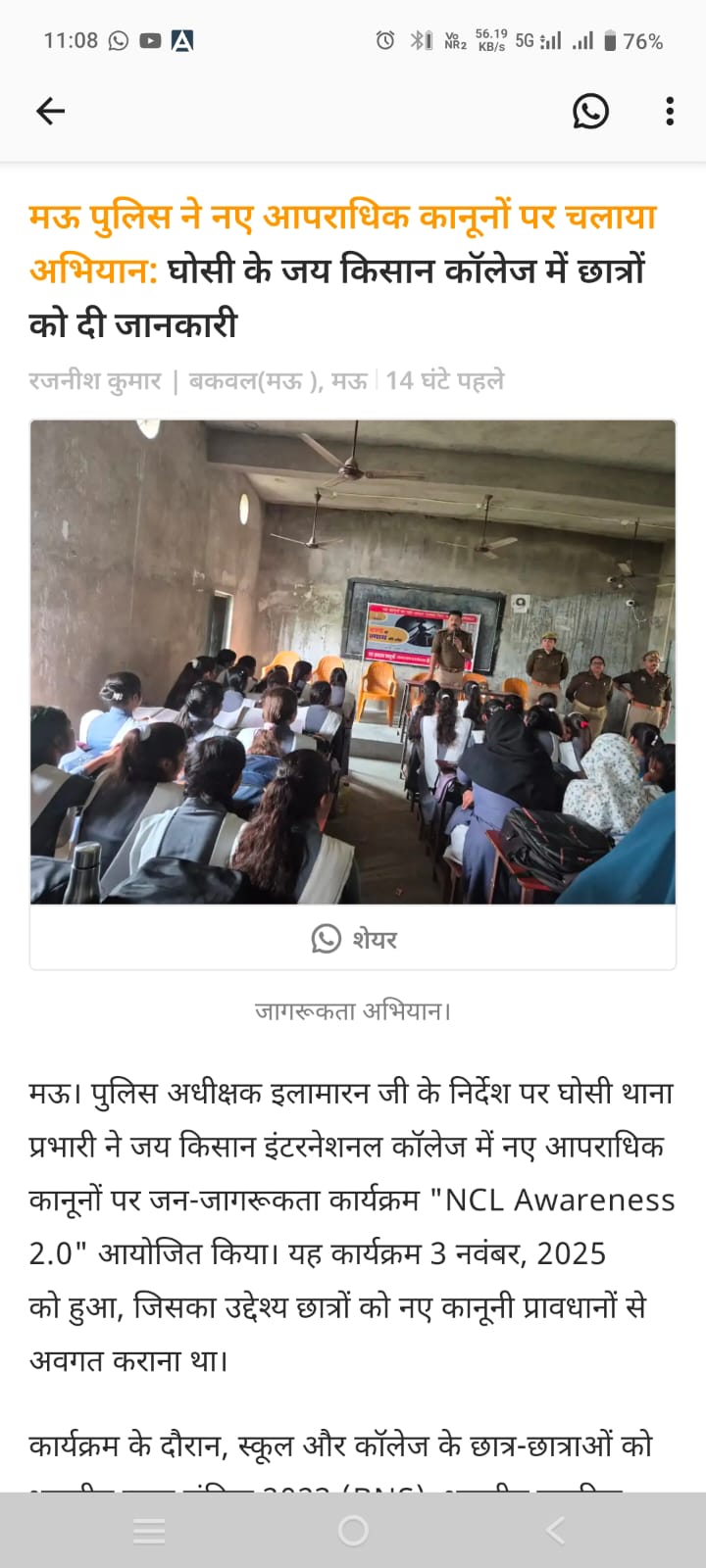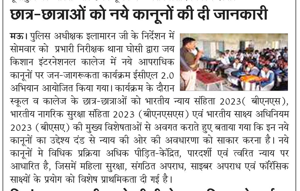 विद्यार्थियों ने नुक्कड नाटक के माध्यम से किया नये कानूनों के प्रति जागरुक के संबंध में न्यूज पेपर कटिंग Show Less