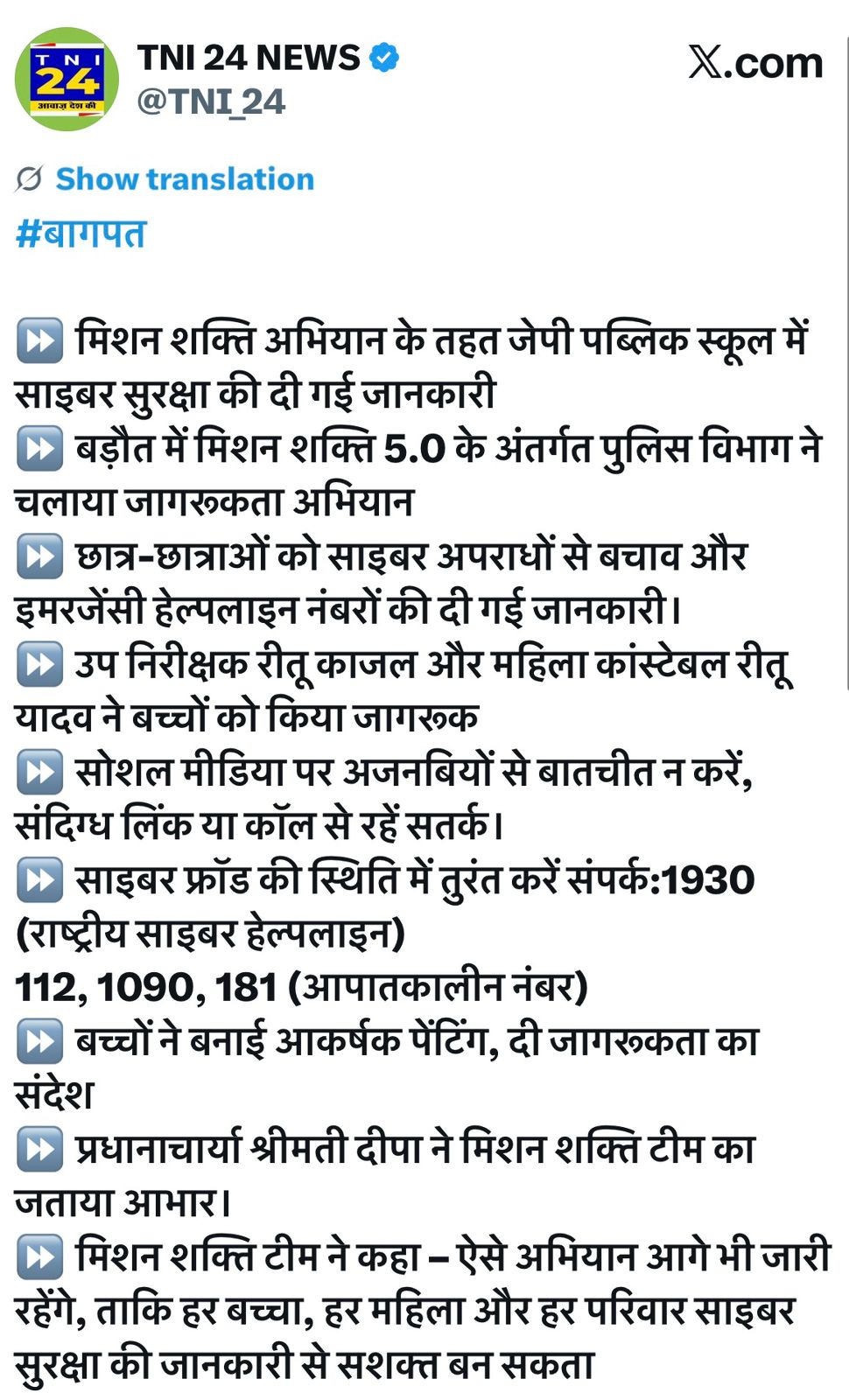 मिशन शक्ति अभियान के अन्तर्गत साइबर सुरक्षा की दी जानकारी के संबंध में TNI24 NEWS की ई-न्यूज Show Less
