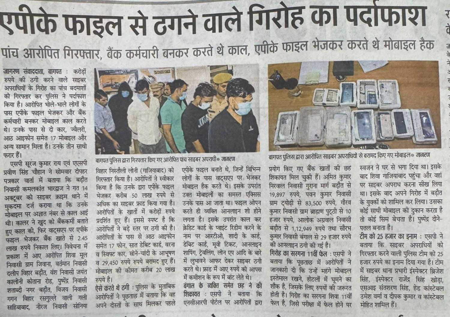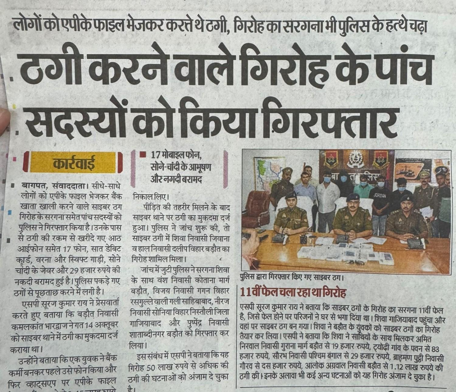 एपीके फाइल के माध्यम से साइबर ठगी करने वाले अभियुक्त गिरफ्तार के संबंध में न्यूज पेपर कटिंग Show Less