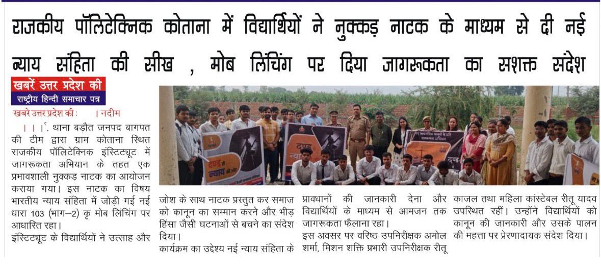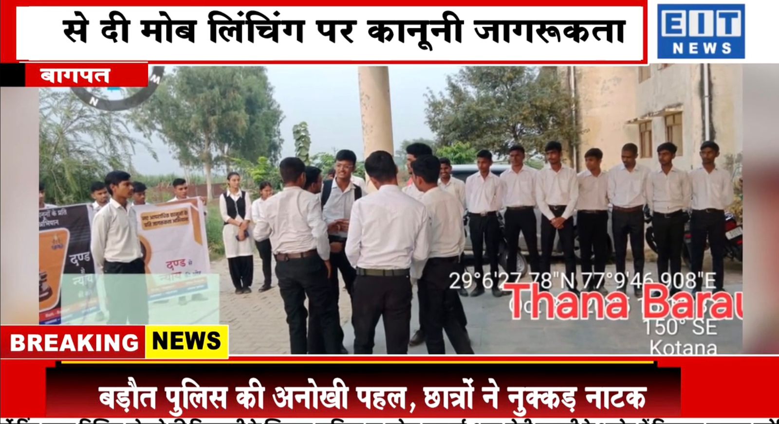 बडौत पुलिस की अनोखी पहल नुक्कड नाटक के माध्यम से दी छात्रों ने मोब लीचिंग की जानकारी के संबंध में EIT NEWS टीवी चैनल की न्यूज Show Less