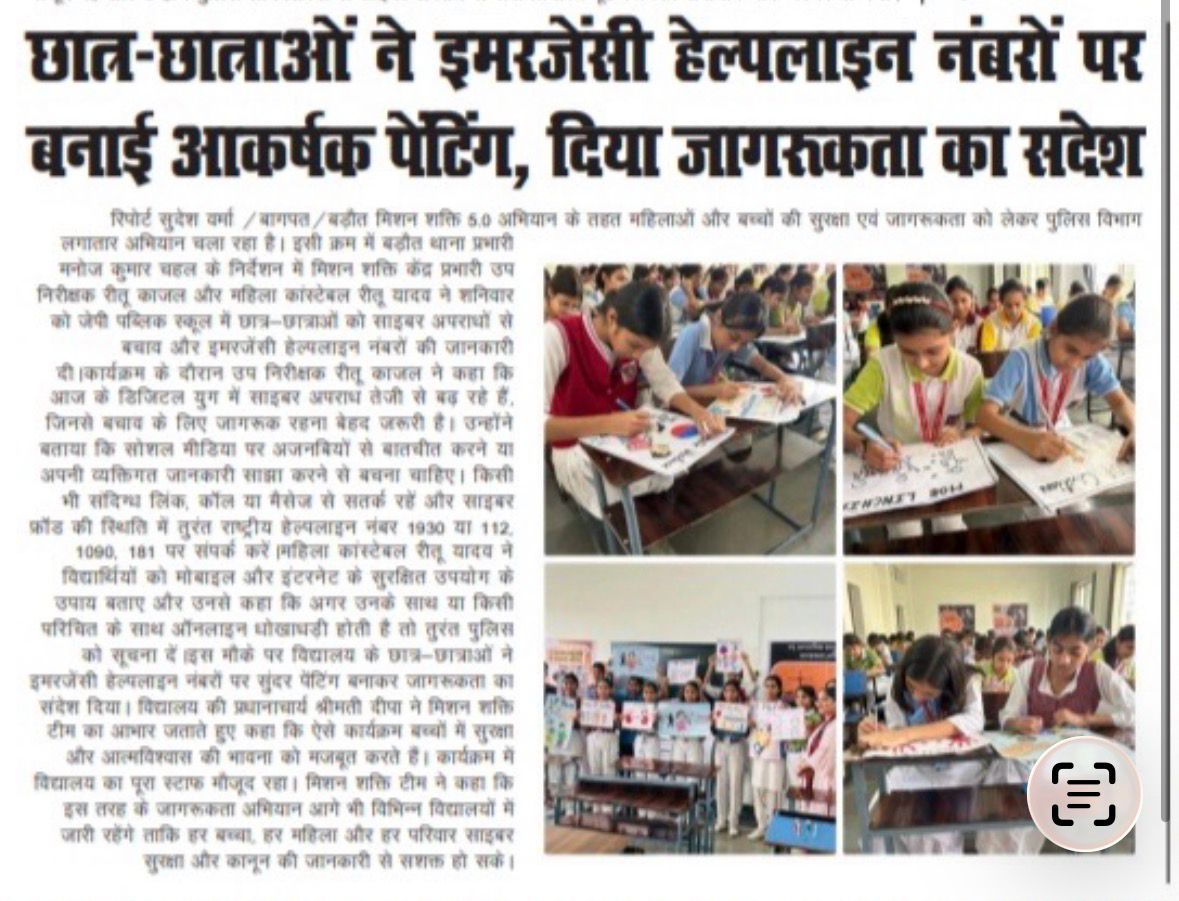 छात्र छात्राओं ने इमरजेन्सी हेल्पलाईन नंबरों पर बनाई पैन्टिंग्स दिया जागरुकता का संदेश के संबंध में ई-न्यूज पेपर कटिंग Show Less