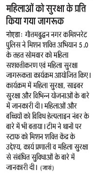 मिशन शक्ति 5.0 के अन्तर्गत कमिश्नरेट गौतमबुद्धनगर की मिशन शक्ति टीमों द्वारा "महिलाओं को सुरक्षा के प्रति किया गया जागरूक" - समाचार पत्र कटिंग Show Less
