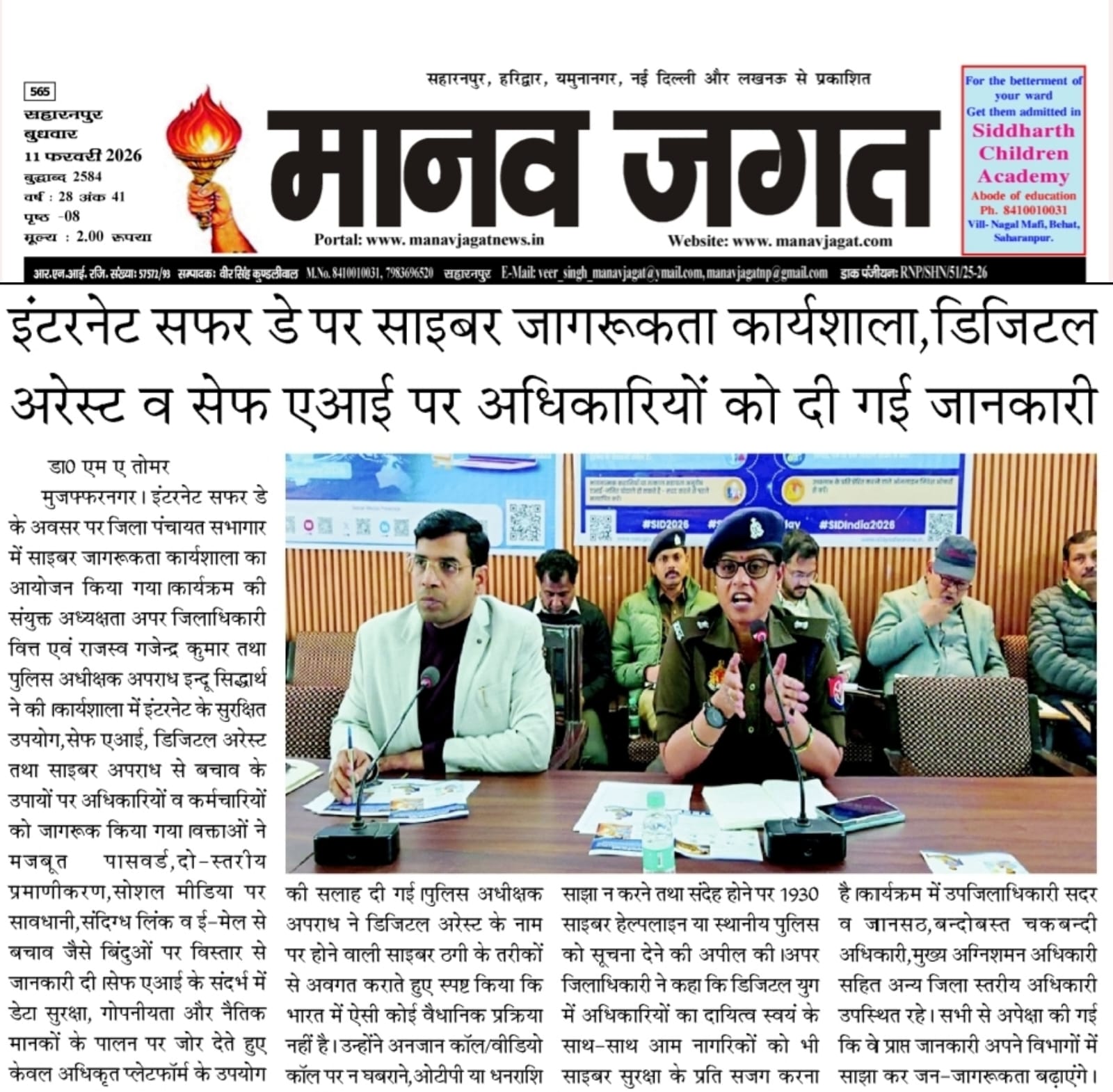 ZUF Manav Jagat newspaper cutting date 12.02.26 Show Less
