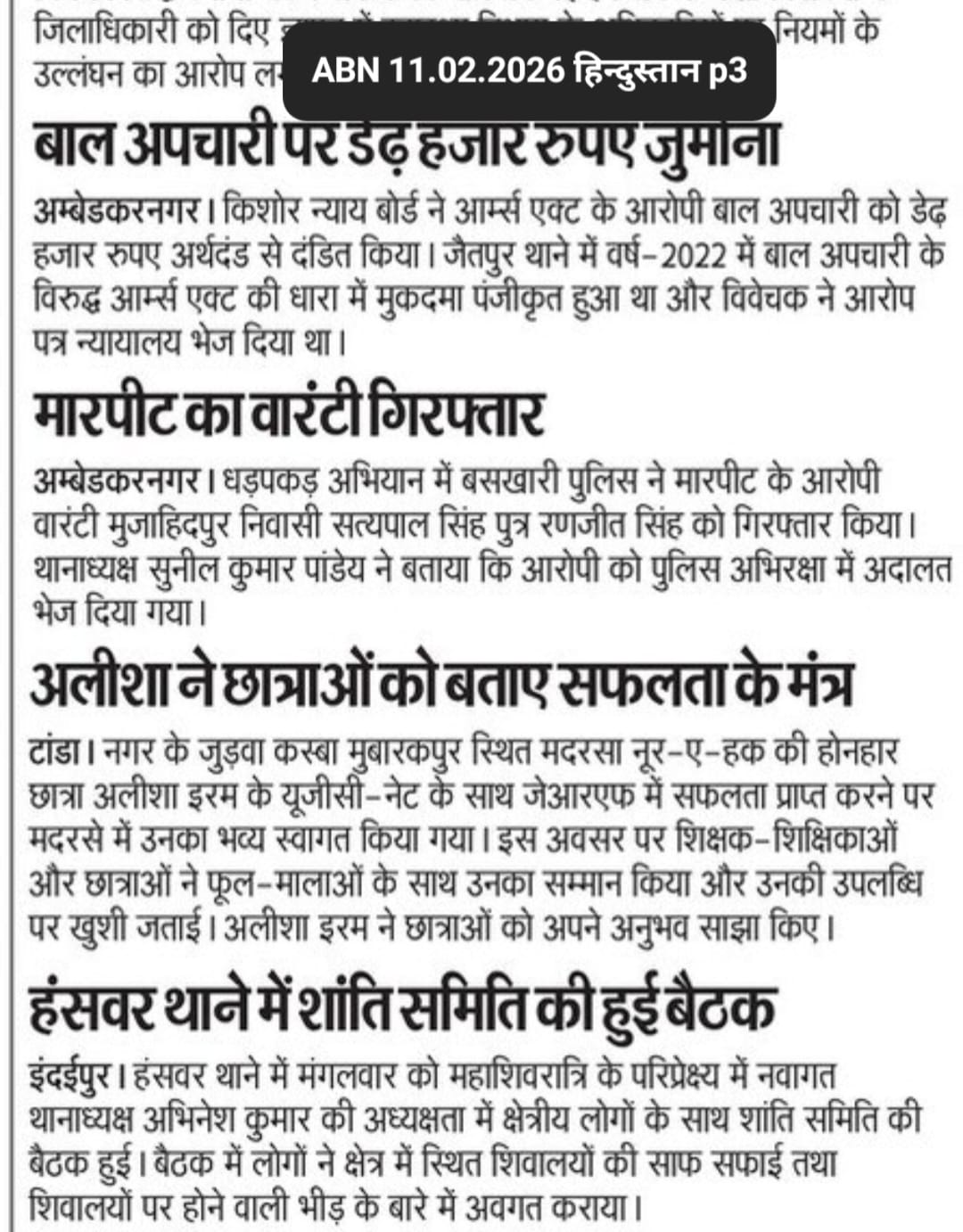 ZUF Hindustan newspaper cutting date 11.02.26 Show Less